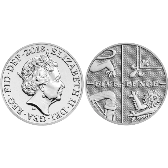 - 2018 5 penny ezüst proof, az érme Ag.925 ötvözetből készült, súlya 3,25 gramm, átmérője 18,00 mm, névértéke 5 penny.
