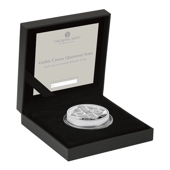 A gótikus korona negyedelt címer 2 uncia ezüst 2021 Proof
