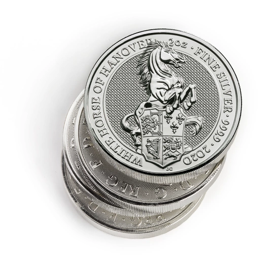 A királynő állatai: Fehér hannoveri ló 2 uncia ezüst 200 darabos csomag 2020