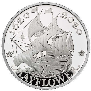 A Mayflower 400. évfordulója 1 uncia ezüst 2020 Proof érme Ag.999 ezüstből készült, átmérője 38,61 mm.
