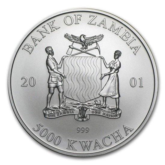 Awers przedstawia herb Zambii.