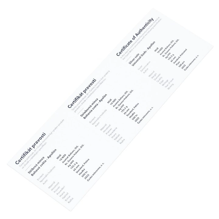 Ezt az egyedi érmét Asamat Baltaev és Bc. Zuzana Hubená tervezte, a Cseh Pénzverde gyártotta, és Niue-ban is törvényes fizetőeszköz. Az érme a fém jogszerűségére, tisztaságára és eredetére vonatkozó garanciával rendelkezik. A termék eredeti dobozában, eredetiséget igazoló tanúsítvánnyal együtt kerül kiszállításra.