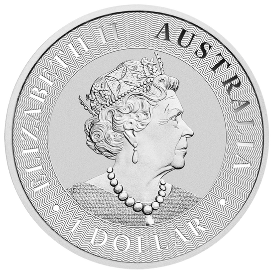 A hátoldalon egy ugráló kenguru látható, háttérben sugarakkal. A kenguru alatt az érme súlya, kibocsátási éve és ezüstfinomsága szerepel.