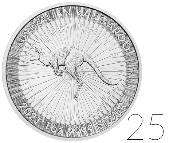 Ausztrál kenguru 1 uncia ezüst 25 darabos csomag 2021