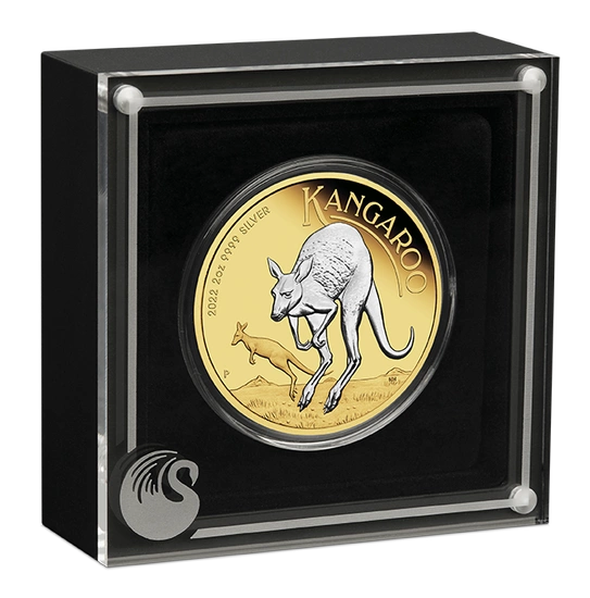 Ausztrál kenguru aranybevonatú 2 uncia ezüst 2022