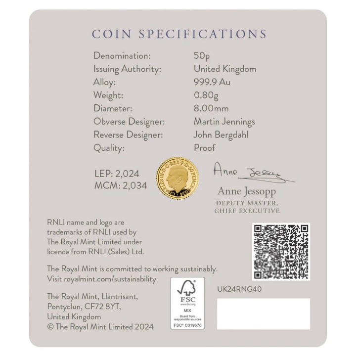 Az RNLI 200 éves jubileuma 1/40 uncia arany 2024 Proof