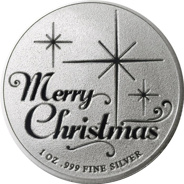 Az előlapon a „MERRY CHRISTMAS” felirat látható, valamint a fém súlyára és tisztaságára vonatkozó információk.