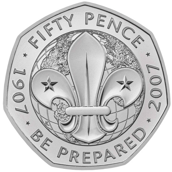 - Girl Guides 50 pennyes, fényes, forgalomba nem hozott érme, az érme réz-nikkel ötvözetből készült, súlya 8 gramm, átmérője 27,30 mm, névértéke 50 penny.
