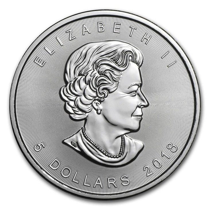 Na rewersie monety został przedstawiony liść klonowy, będący symbolem narodowym Kanady, a także próba w jakiej została wybita moneta (Ag .9999) oraz nazwa kraju (Canada), w którym jest produkowana.