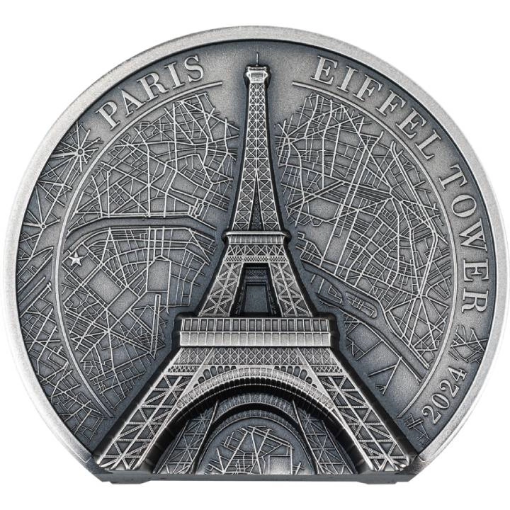 Cook-szigetek: Eiffel-torony 2 unciás ezüst 2024 Ultra High Relief antikolt érme