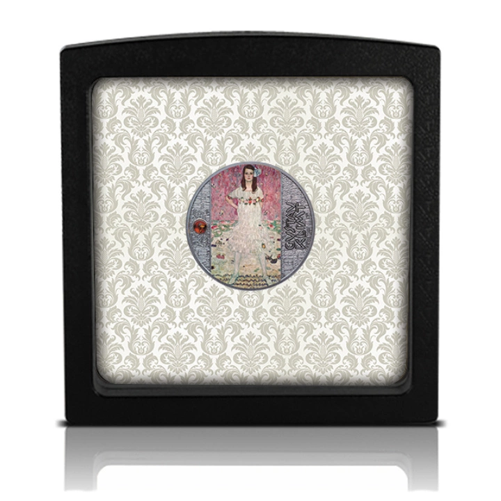 Az előlapon egy címeres szimbólum látható. A címert a fém súlyára és tisztaságára vonatkozó információkat tartalmazó felirat veszi körül.
