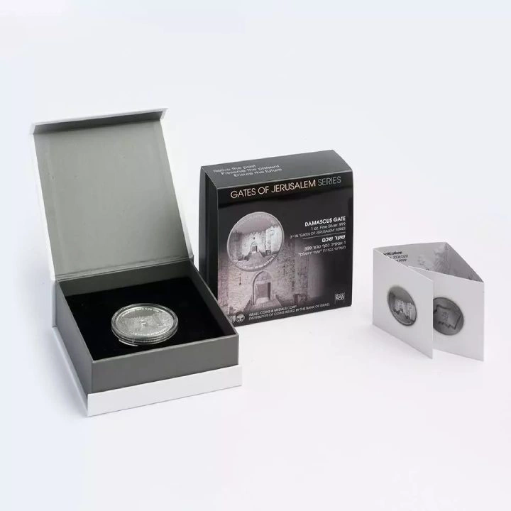 Az előlapon a „Damaskuszi kapu” és a „DAMASCUS GATE” felirat látható. Az előlapon héber és angol nyelven szerepelnek az év, a fém tisztasága és súlya is.