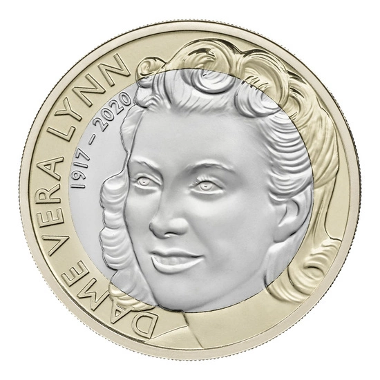 Az érme hátlapján Dame Vera Lynn arcképe és a „DAME VERA LYNN 1917-2020” felirat látható.
