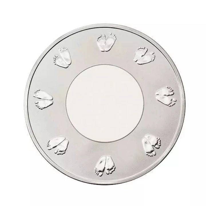 Az előlapon egy színes gólya látható, amely egy csecsemőt tart a csőrében, és a „CONGRATULATIONS” felirat. Az előlapon héber és angol nyelven szerepelnek az év, a fém tisztasága és súlya, valamint a „The Holy Land Mint” logója.