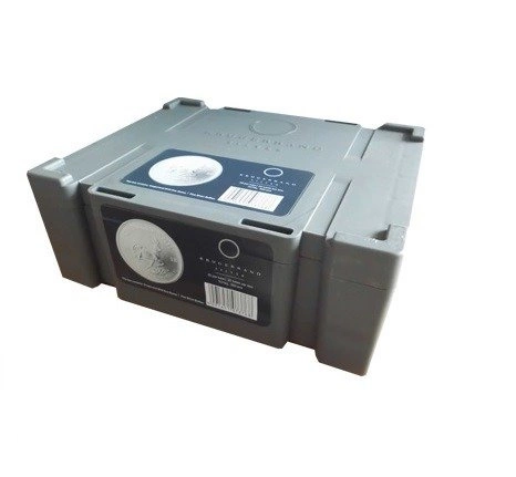Oryginalny Masterbox dedykowany dla srebrnych Krugerrandów. Jeden box może pomieścić 20 oryginalnych tub, w których może znajdować się do 25 monet. Produkt wykonany z grubego i bardzo wytrzymałego tworzywa, które jest odporne na wszelkiego rodzaju uderzenia.Tuby przechowywane w środku są odpowiednio dociśnięte wiekiem co uniemożliwia ich przypadkowe otwarcie. Takie zabezpieczenie bulionu jest szczególnie polecany dla osób, które chcą zapewnić idealne warunki przechowywania swoich kolekcji. Podana cena dotyczy jednego Masterboxa, produkt sprzedawany jest bez tub i monet.