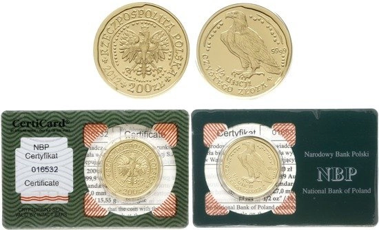 Unikatowa złota moneta z wizerunkiem Orła Bielika to produkt o wadzę 1/2 uncji, który został wykonany z czystego złota próby 9999. Moneta przedstawiająca największego Polskiego ptaka drapieżnego to ciekawa propozycja dla każdego, kto pragnie poszerzyć swój portfel inwestycyjny. Emitentem złotego waloru jest Narodowy Bank Polski. Dodatkowo ten niezwykły egzemplarz jest pełnoprawnym środkiem płatniczym na terenie Polski. Moneta została zabezpieczona certipackiem do którego jest dołączony certyfikat autentyczności.