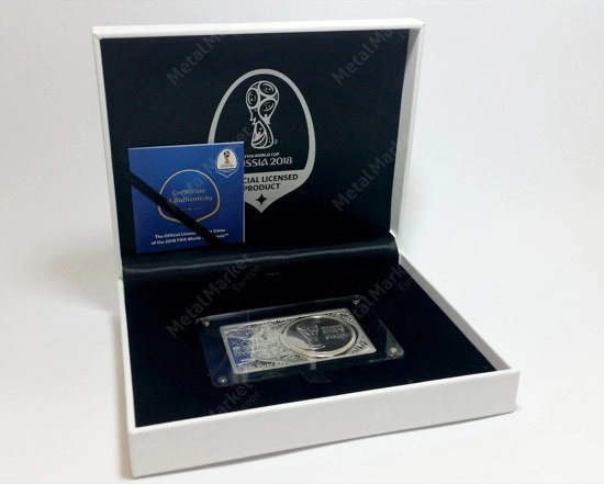 Zestaw składający się ze srebrnej monety o wadze 1 uncji i 2 uncjowej sztabki poświęcony Mistrzostwom Świata w Piłce Nożnej odbywających się w Rosji. Zestaw posiada indywidualną numerację i jest dostępny w eleganckim etui, wraz z certyfikatem autentyczności. Limitowany nakład zestawu wynosi 2018 sztuk na cały świat.