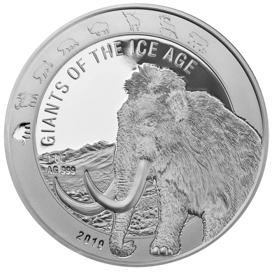 Bulionowa moneta przedstawiająca postać Mamuta, została wybita z czystego srebra próby 999, o wadzę jednej uncji trojańskiej. Za jej wybicie odpowiada niemiecki producent - Leipziger Edelmetallverarbeitung. Moneta ta także stanowi pełnoprawny środek płatniczy oraz posiada gwarancję rządu Ghany. Zwieńczeniem całości jest nakład srebrnej monety, który liczy 15 000 sztuk.