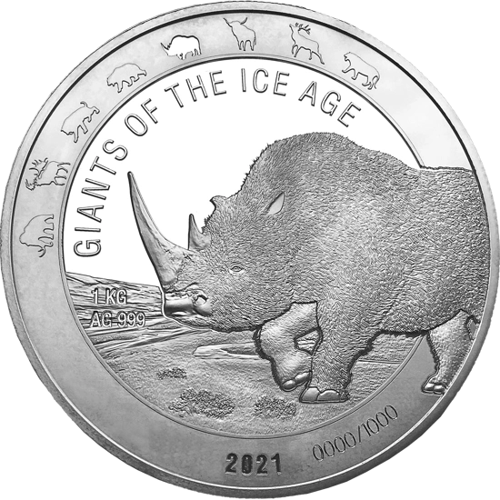 Ghána: A jégkorszak óriásai – szőrös orrszarvú 1000 gramm ezüst 2021