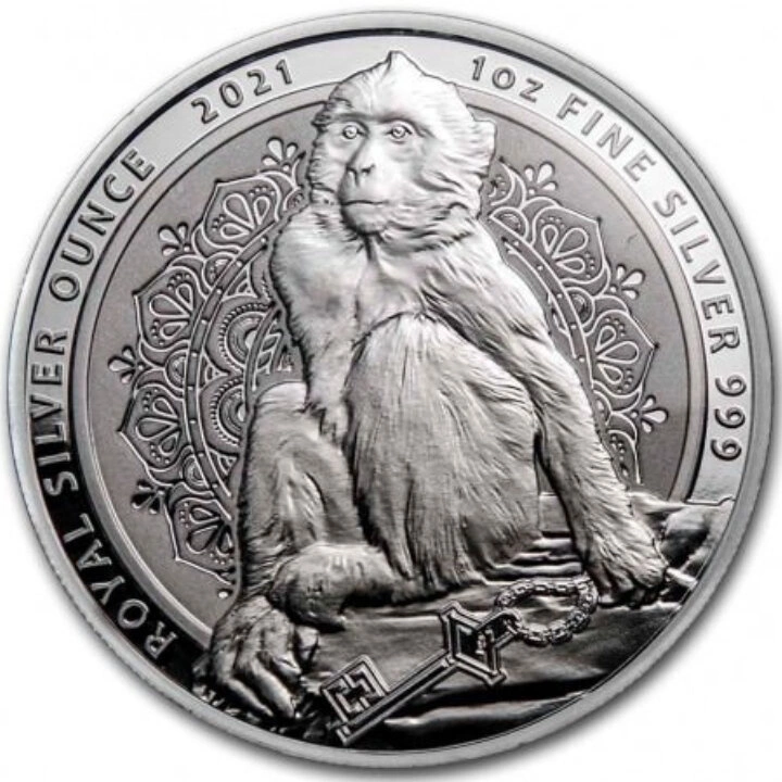 A hátoldalon egy barbár makákó képe látható, amelyet természeti táj vesz körül. A mintát a „ROYAL SILVER OUNCE” felirat, a verés éve, a súly és a fém tisztasága gazdagítja.