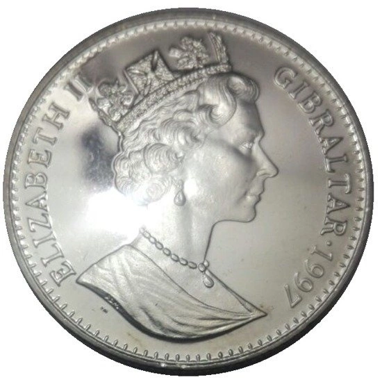 Srebrna moneta z wizerunkiem Yorkshire Terrier to walor wykonany z czystego kruszcu próby 999, o wadzę jednej uncji. Jest to moneta, która kończy oraz przynależy do serii złotych oraz srebrnych walorów - Gibraltar's Royal Dog. Seria liczy 7 odsłon, które były wydawane w latach 1991 -1997.