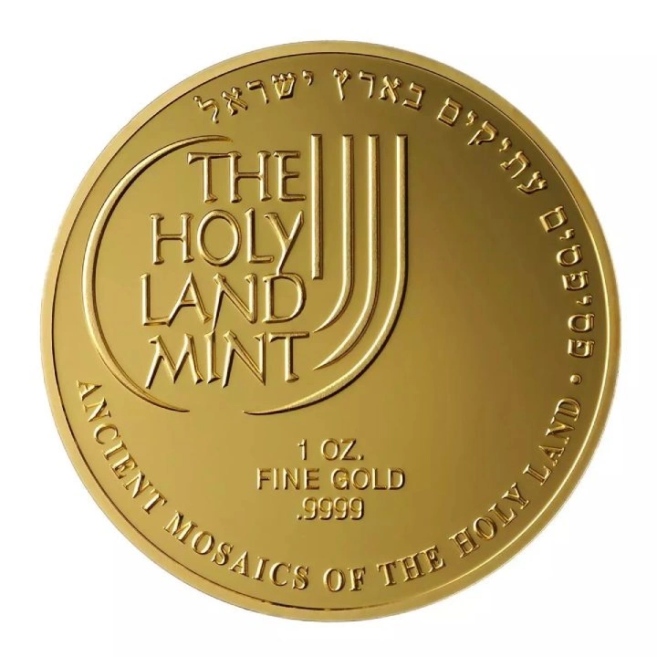 A hátoldalon a „The Holy Land Mint” logója és az „ANCIENT MOSAICS OF THE HOLY LAND” felirat látható. A hátoldalon a fém tisztaságára és súlyára vonatkozó információk is szerepelnek.