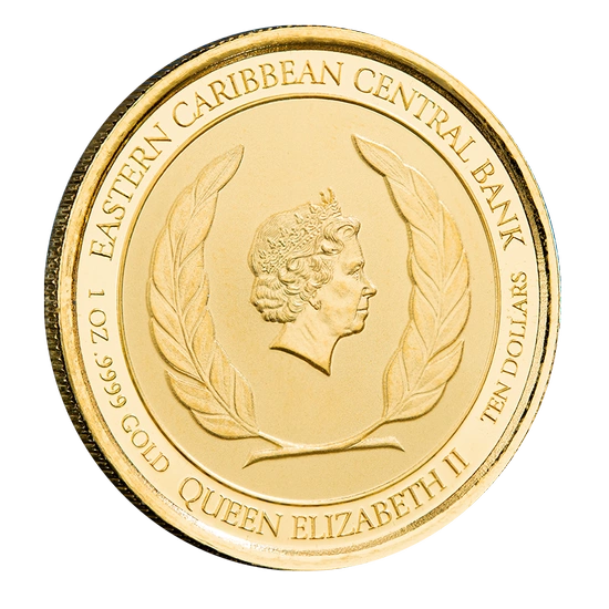 Az aranyérme előlapján II. Erzsébet királynő arcképe és a „QUEEN ELIZABETH II” (II. Erzsébet királynő) és „EASTERN CARIBBEAN CENTRAL PARK” (Kelet-karib-tengeri Központi Bank) feliratok láthatók. Az előlapon az érme súlya, tisztasága és névértéke is szerepel.