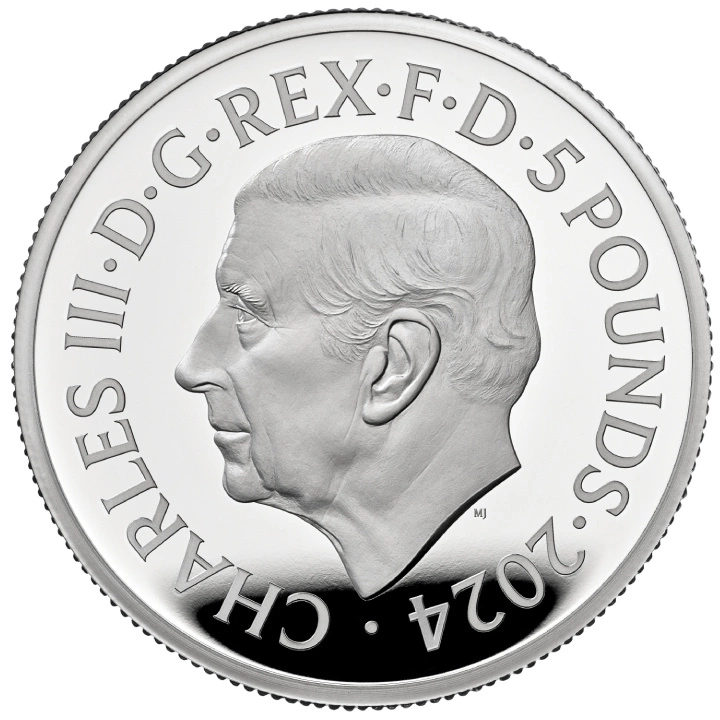 Az érme előlapján III. Károly brit király arcképe, a névérték és az évszám látható, a tervező Martin Jennings.