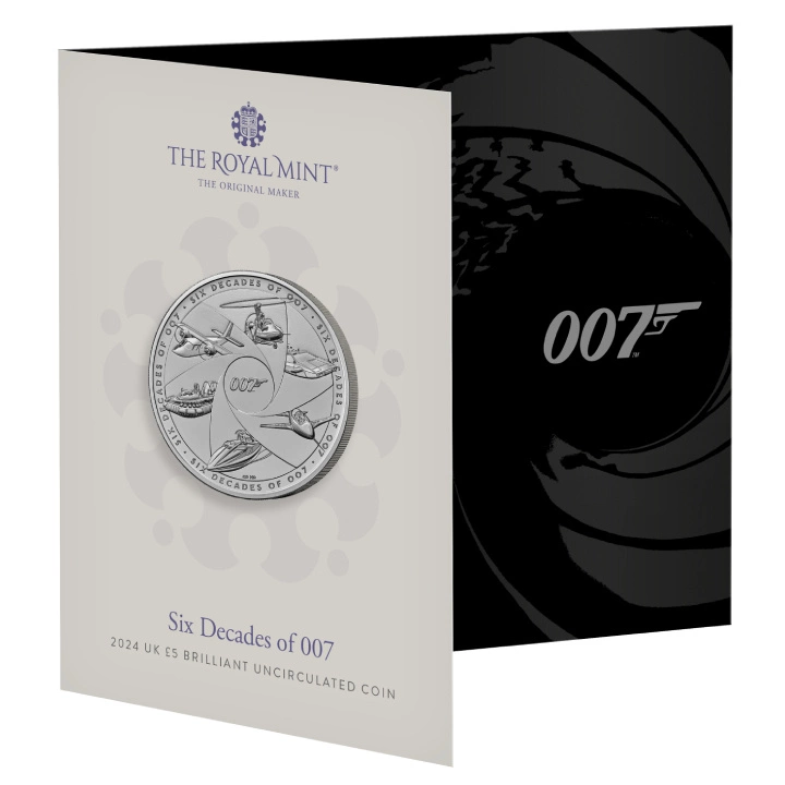 Az érme hátoldalán dinamikus fegyvercső-effektus látható, amely körülveszi a különböző filmévtizedek ikonikus járműveit, amelyek Bond történetét szimbolizálják. A tervezők, Matt Dent és Christian Davies gondoskodtak arról, hogy ez az egyedi dizájn tisztelegjen a 007-es kalandok hat évtizedének, miközben kiemeli a középen található ikonikus 007-es szimbólumot.