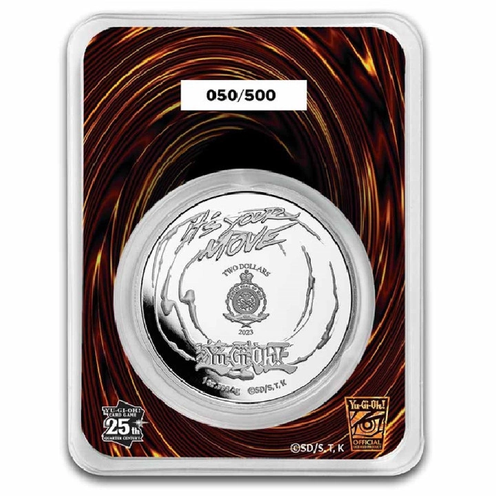 Az ezüstérme előlapján Niue központi pecsétje, a YU-GI-OH! logó és az „IT'S YOUR MOVE” felirat látható. Az előlapon szerepel az érme súlya, tisztasága, névértéke és kibocsátási éve is.