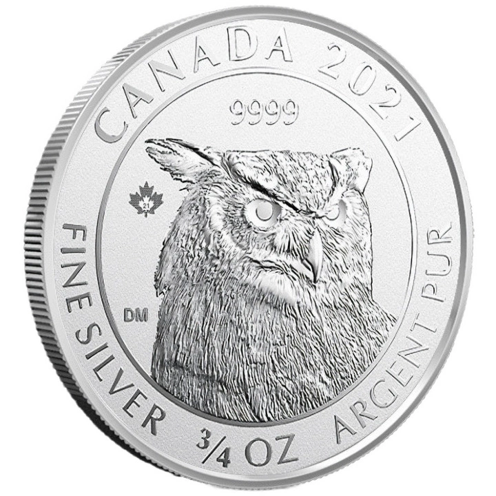 A 2021-es 3/4 unciás kanadai nagy szarvas bagoly ezüstérme a Royal Canadian Mint által kibocsátott, rangos Animal Portrait sorozat része. A sorozat 2017-ben debütált, és azóta minden évben egy-egy állatot ábrázol, amely a kanadai állatvilágot szimbolizálja. A 2021-es kiadásban először jelenik meg egy madár – a hatalmas nagy szarvas bagoly, más néven tigrisbagoly vagy hoot bagoly, amely az erőt, az éberséget és a mesteri vadászati képességeket testesíti meg. Az érme 0,9999 finomságú ezüstből készült, névértéke 2 kanadai dollár, amelyet a kanadai kormány garantál. Átmérője 38 mm, súlya 3/4 troy uncia. Az előlapon Susanna Blunt által tervezett II. Erzsébet királynő jobb profilja látható. Ez a negyedik hivatalos képe a kanadai érméken, és az első a 1930-as évek óta, amelyen nem visel koronát. Az előlapon az érme névértéke is szerepel. A hátoldalon egy virginiai bagoly látható, jellegzetes átható tekintetével, amely szimbolizálja csendes és pontos ragadozó szerepét. A mintát Denis Mayer Jr. tervezte, és a madár képe körül a kibocsátás éve, a súly, az ezüst tisztasága és a kibocsátó neve szerepel. Kérjük, vegye figyelembe! A termék képe csak illusztrációs célokat szolgál, ezért a termék tényleges megjelenése kissé eltérhet a képen láthatótól.Gyártó