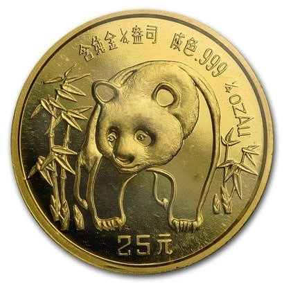 To złota moneta, którą po raz pierwszy zaczęto wybijać w 1982 roku. Produkowana przez renomowaną chińską mennicę Shanghai Mint w złocie najwyższej próby (999), obecnie wybijana także w mennicy w Pekinie i Shenzhen. Powoli staje się jedną z najbardziej rozpoznawalnych monet na świecie. Ze względu na swój wygląd stanowi nie tylko zabezpieczenie kapitału, ale może być również doskonałym uzupełnieniem kolekcji. Warto wspomnieć, że Chińska Panda jest prawnym środkiem płatniczym wydawanym wyłącznie przez Ludowy Bank Chin i posiada rządową gwarancję wagi i czystości kruszcu. Moneta ta występuje w kilku wersjach wagowych i w pewnym momencie produkowana była w siedmiu rozmiarach, ustępując wachlarzem jedynie Australijskiemu Samorodkowi.