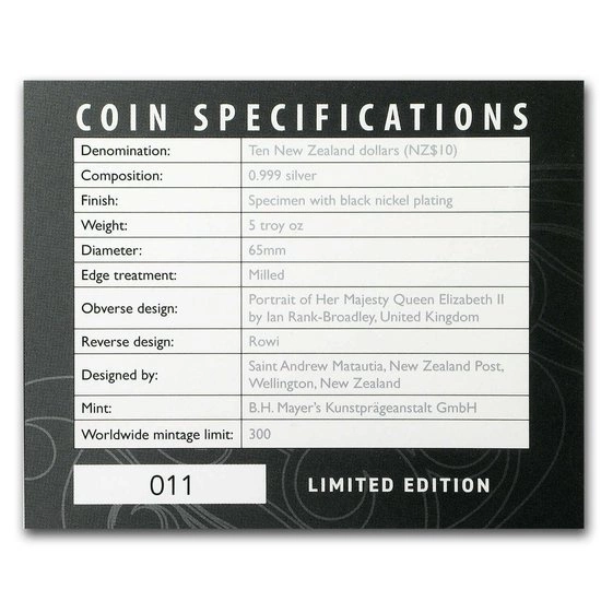Moneta z roku 2020 jest bita z czystego srebra próby 999, o wadze pięciu uncji oraz średnicy liczącej 65 mm.Ta unikatowa moneta jest produkowana w limitowanym nakładzie liczącym jedynie 300 sztuk!. Co więcej, każda sztuka została wykończona czarnym niklem oraz jest dostarczana w eleganckim opakowaniu wraz z numerowanym certyfikatem autentyczności.