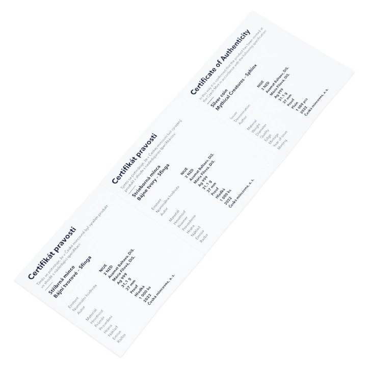 Ezt az egyedi érmét Asamat Baltaev, DiS és Mária Filová, DiS tervezte, és a Cseh Pénzverde gyártotta. Niue-ban is törvényes fizetőeszköz. Az érme a fém jogszerűségét, tisztaságát és eredetét garantáló tanúsítvánnyal rendelkezik. A termék eredeti dobozában, eredetiséget igazoló tanúsítvánnyal kerül kiszállításra.