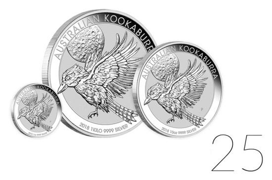 Kookaburra 10 uncia ezüst 2018 25 darabos csomag