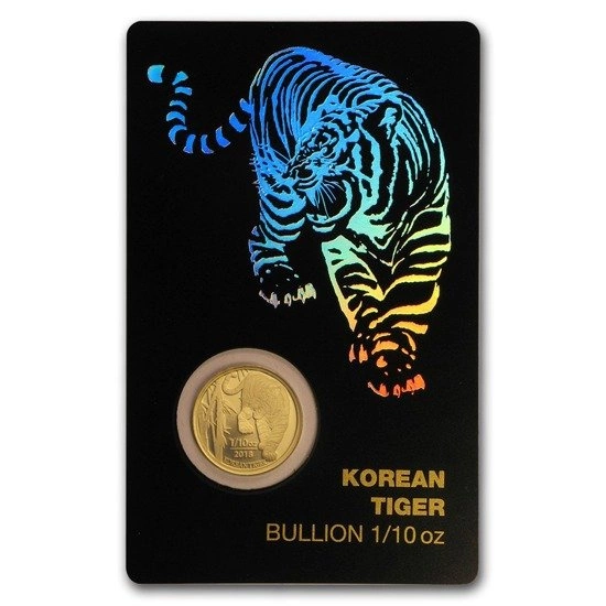 Seria Koreański Tygrys zapoczątkowana została w 2016 roku odnosząc ogromny sukces, początkowo seria była wybijana w złocie o wadzę 1/2 oraz 1/4 uncji złota, od 2018 zaczęto wybijać medale o wadzę 1 uncji. Złoty medal produkowany w Korei Południowej przez KOMSCO zawiera 99,99% złota i posiada wagę 1/4 uncji. Jest to złoty medal znajdujący się w certipacku.