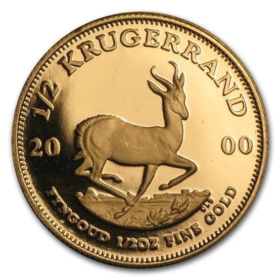 Rewers przedstawia antylopę springbok, która jest symbolem Południowej Afryki. Po jej obu stronach znajdują się liczby reprezentujące rok wybicia, a pod spodem widnieje napis „Fyngoud 1/2oz fine gold”, wskazujący zawartość czystego złota.