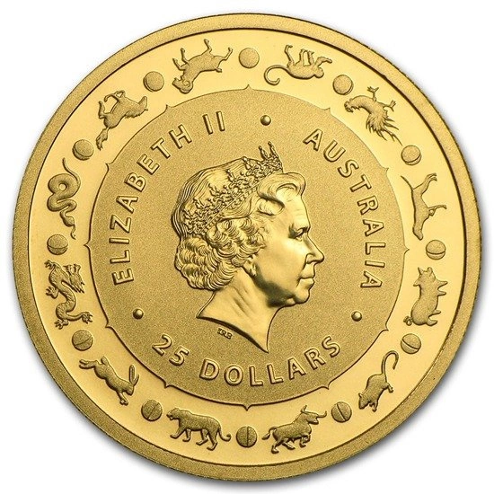 Awers monety niezmiennie zdobi wizerunek Królowej Elżbiety II z nominałem i krajem wydania. Wszystko jest otoczone przez symbole zwierząt występujących w Chińskim kalendarzu.