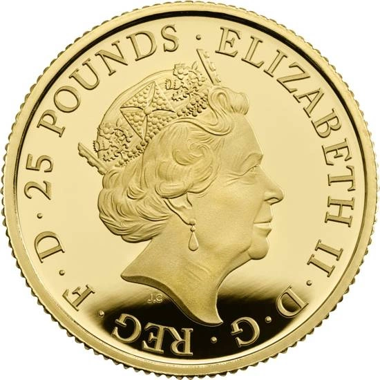 A Tigris éve aranyérme előlapján II. Erzsébet királynő képe látható, amelyet Jody Clark tervezett. Az egész érmét az „ELIZABETH II” felirat veszi körül. Az előlapon az érme névértékére vonatkozó információk is szerepelnek.