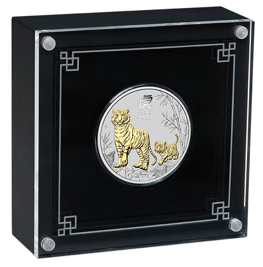 Az érme 9999-es tisztaságú ezüstből készült, súlya egy troy uncia, átmérője 40,9 mm. Az érme 24 karátos arannyal van bevonva. A 25 000 darabos limitált példányszámú érme gyártásáért a híres és legrégebbi ausztrál pénzverde, a Perth Mint felel. A 2022-es Ezüst Tigris év érme az ausztrál kormány által garantált termék, és a kibocsátó országban törvényes fizetőeszköz. A termék egyedi, eredeti csomagolásban kerül forgalomba.