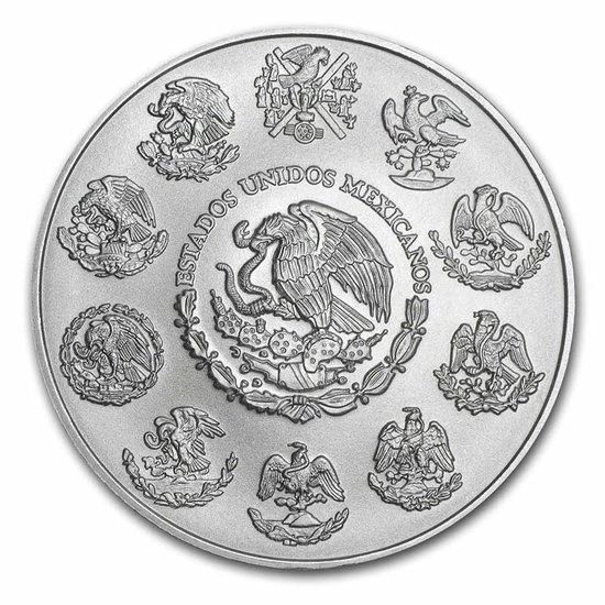 A hátoldalon a szárnyas mexikói szabadság istennő szobra látható, háttérben a hegycsúcsokkal. A győzelem képe a Nike vagy Victoria néven ismert római és görög istennőn alapul.