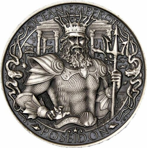 A hátoldalon a koronát viselő görög isten, Poszeidón látható, aki hagyományos háromágú szigonyát tartja a kezében, valamint a „POSEIDON” és „OCEAN EMPEROR” feliratok.