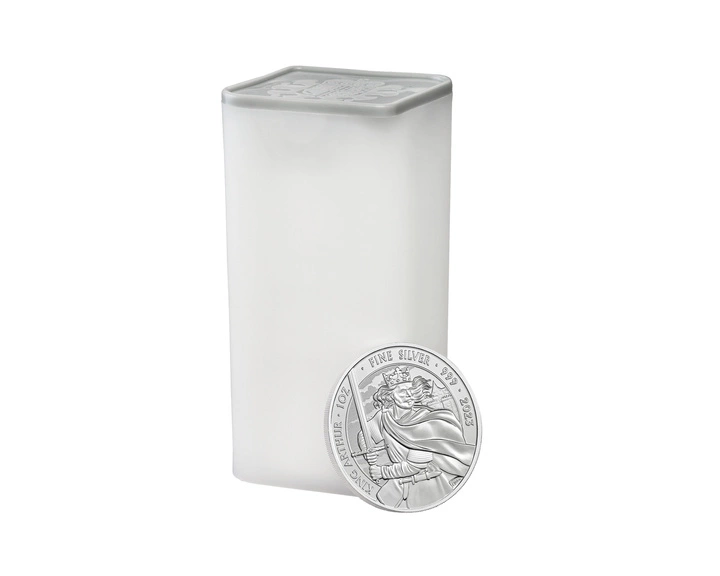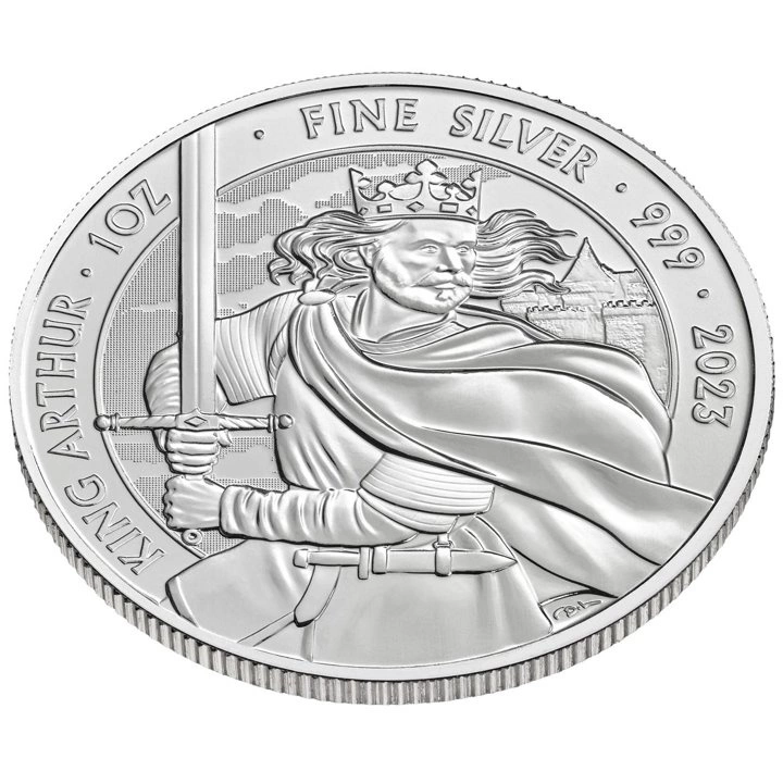 A Mítoszok és legendák: Arthur király 1 unciás ezüstérme 2023 a történelmi Britannia uralkodóját, Arthur királyt ábrázolja, aki számtalan legenda, irodalmi mű és film hőse. Többek között a híres mű, a „A kerekasztal lovagjai” című műből ismert.