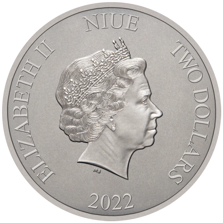 Az ezüstérme előlapján II. Erzsébet királynő képe, az „ELIZABETH II” felirat, a „NIUE” felirat, valamint a névérték és a kibocsátás éve látható. Az előlapot Ian Rank-Broadley tervezte.