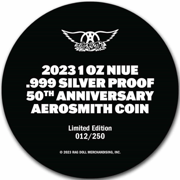 Niue: Aerosmith 50. évforduló 1 uncia ezüst 2023 Proof