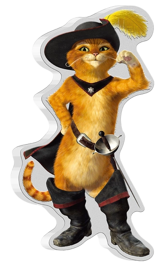 Az ezüstérme hátoldalán a színes Csizmás kandúr látható.