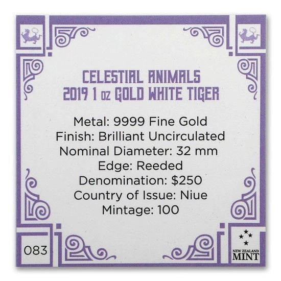 Niue: Égi állatok – Fehér tigris 1 uncia arany 2019