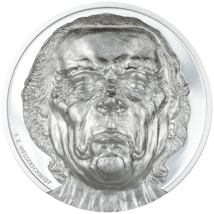 A hátoldalon egy homlokráncoló, szorosan összezárt ajkú férfi mellszobra látható, valamint a „F. X. MASSERSCHMIDT” felirat.