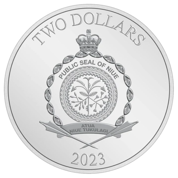 Az ezüst érme előlapján Niue címere látható, valamint a névérték és a kibocsátás éve.
