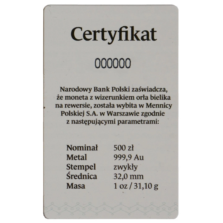 Az előlap a Lengyel Köztársaság emblémájának számító sas képével van díszítve.